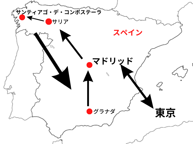 サンティアゴ・デ・コンポステーラ⇒グラナダ(エコノミークラス) |